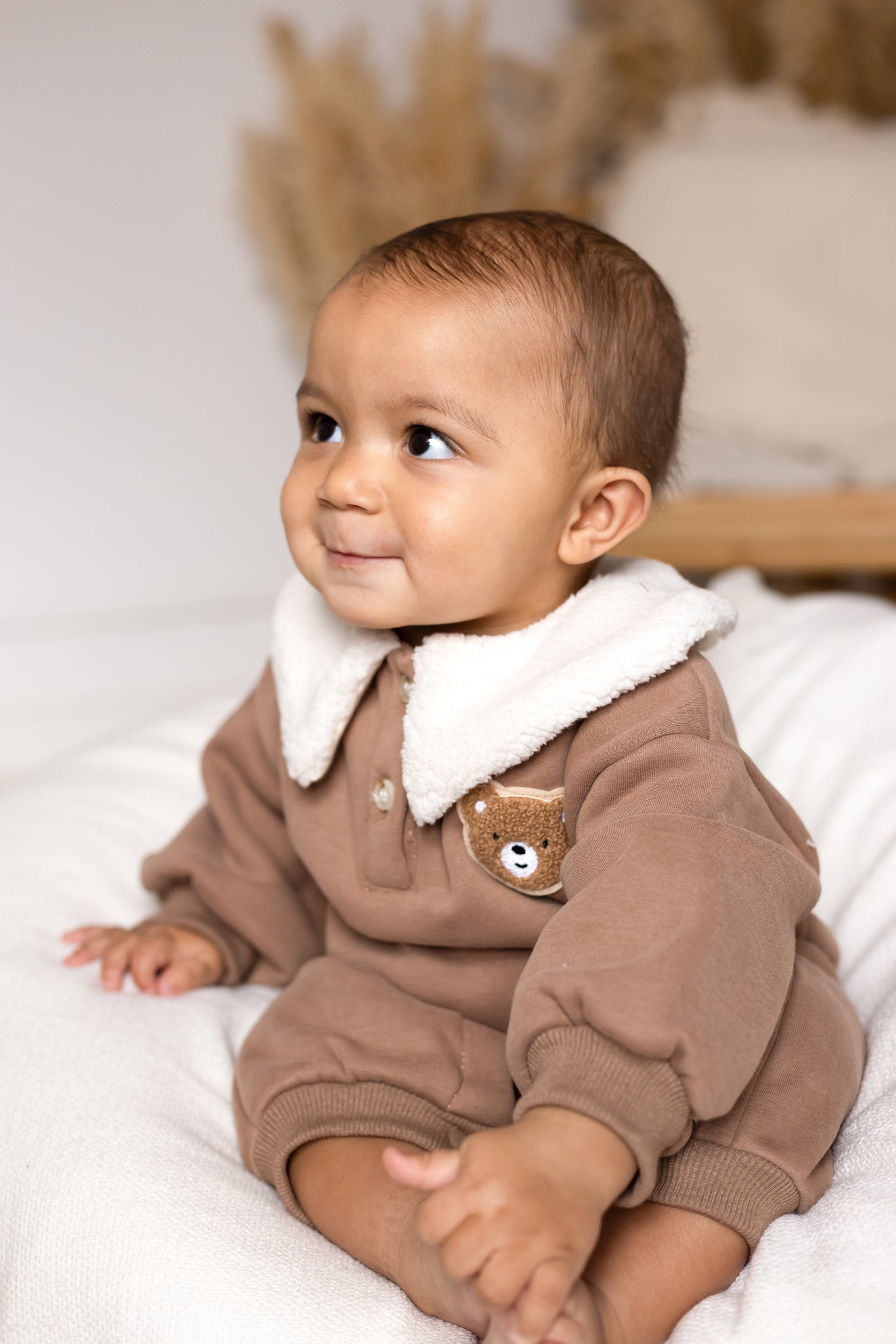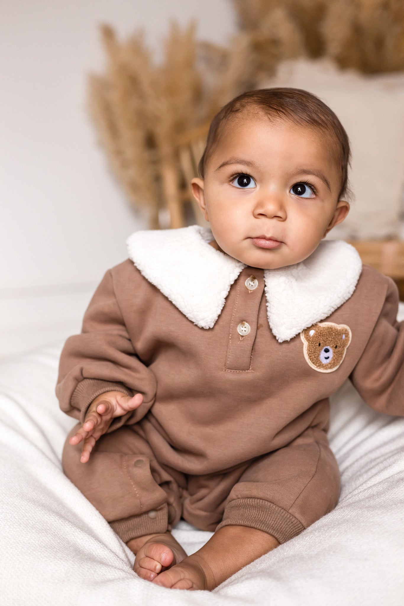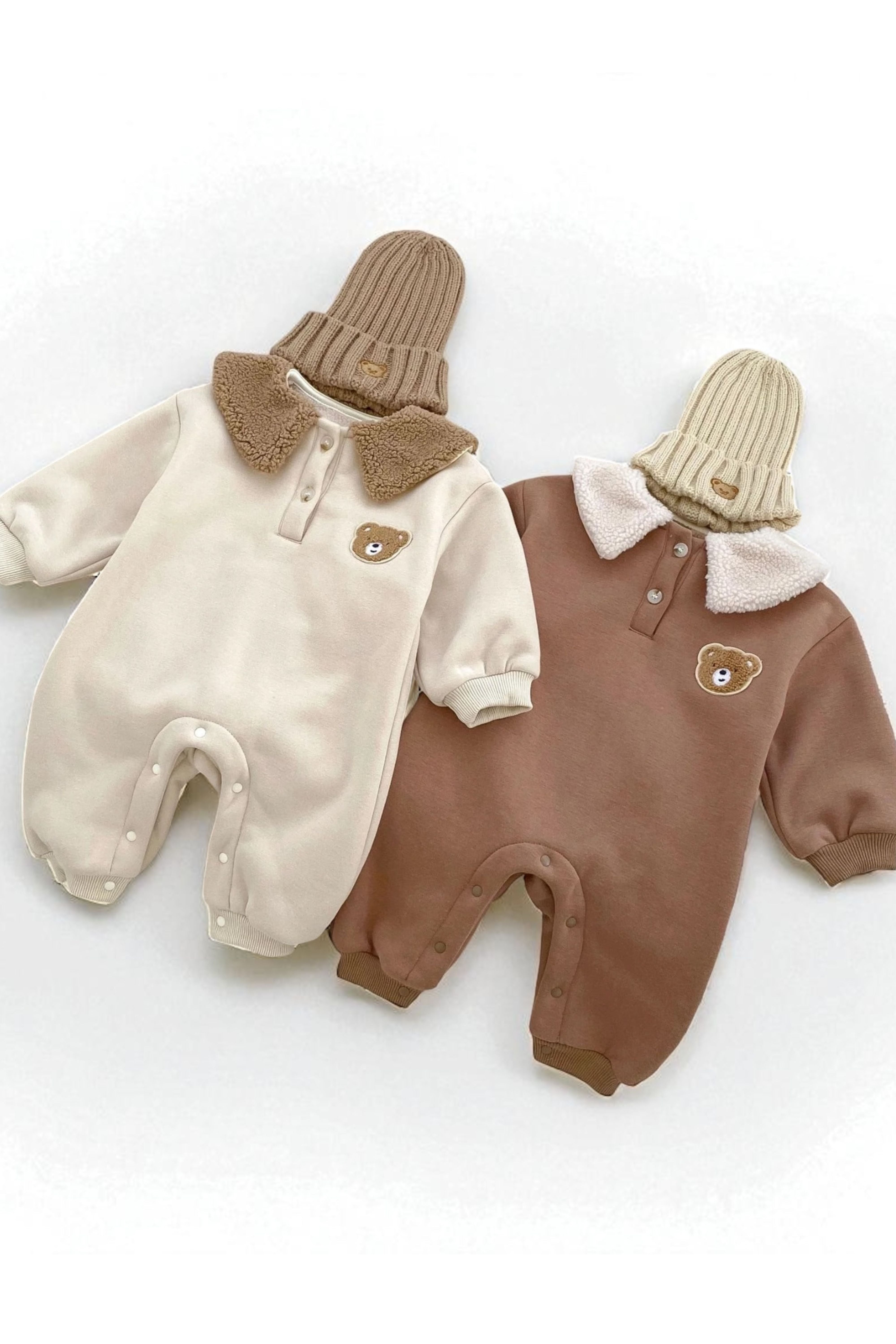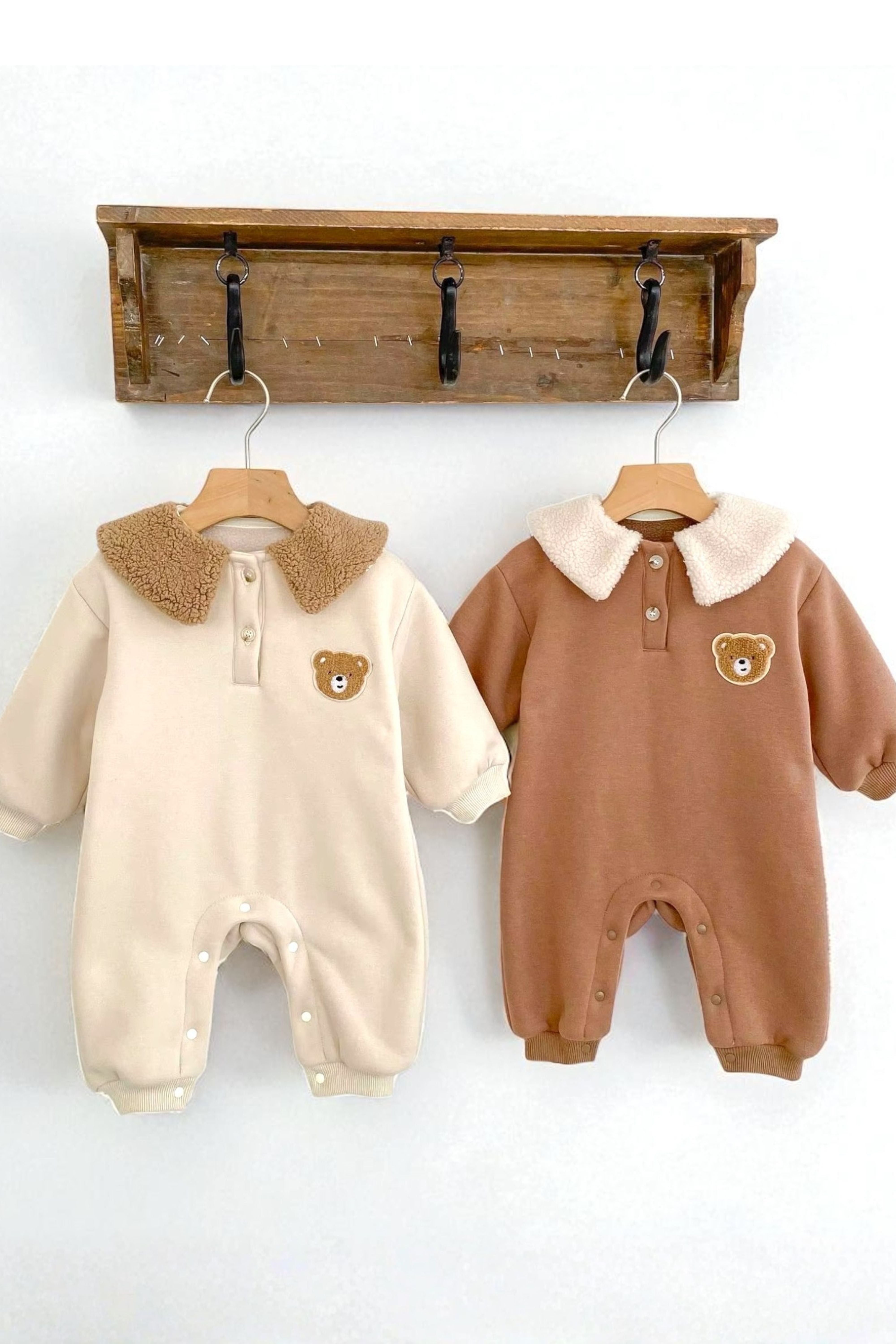🧸 Cozy Meets Cute Crafted with 95% cotton and 5% polyester, this romper is luxuriously soft on delicate skin while keeping baby warm on chilly days. The plush teddy collar adds a playful twist that’ll have everyone saying “aww!”