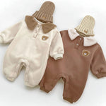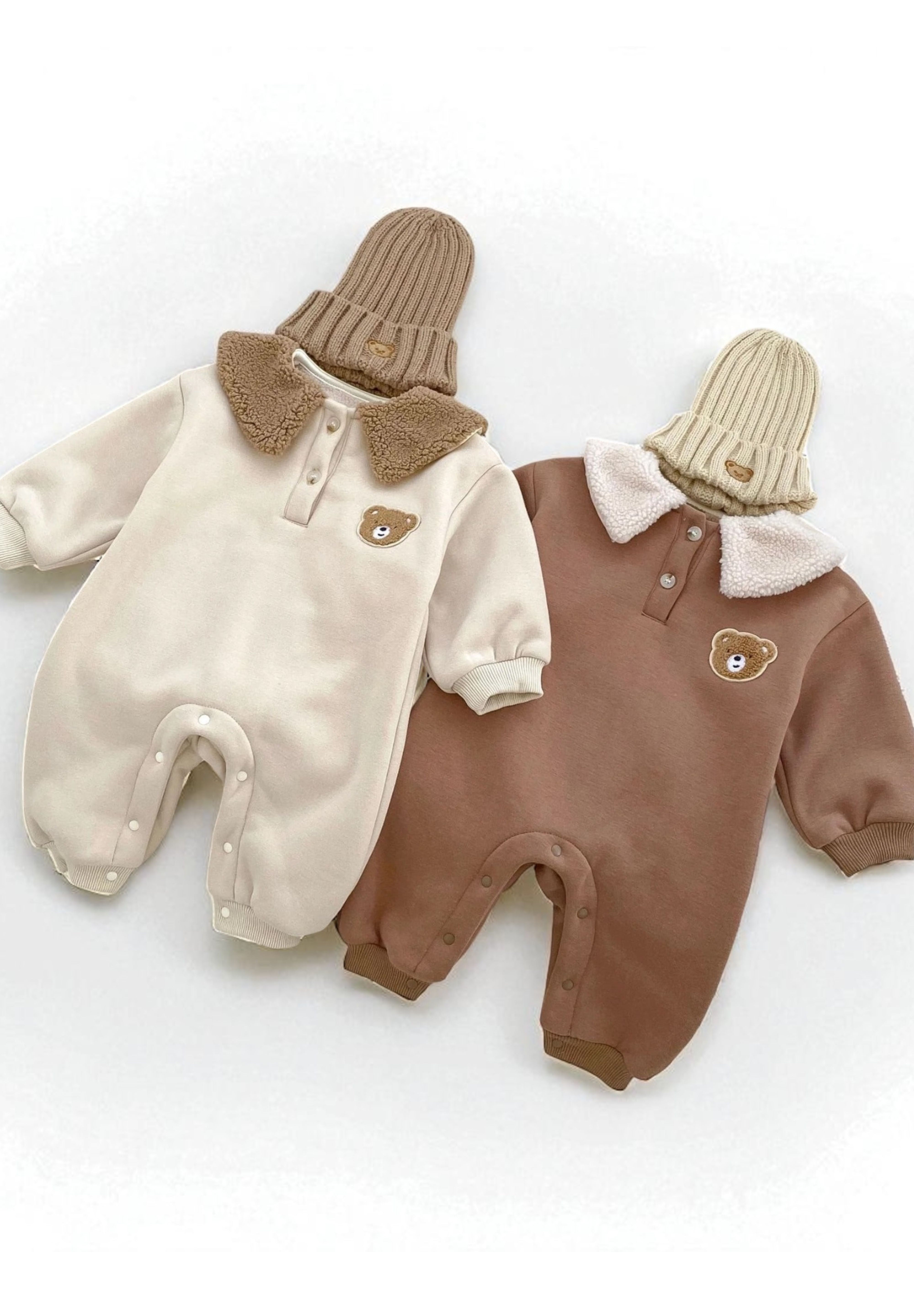 🐻 Adorable Bear Detail Each romper features an embroidered bear face – the perfect nod to your little cub’s cuddly personality. Choose from two warm neutral tones: Creamy Oat or Toasted Cocoa.