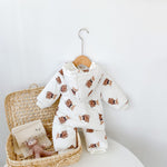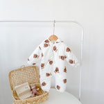 Made for chilly days, the bear puffer suit is padded for extra warmth. Crafted in soft sustainable fabrics with a little stretch, this puffer has a front opening to make getting dressed for a day out simpler.