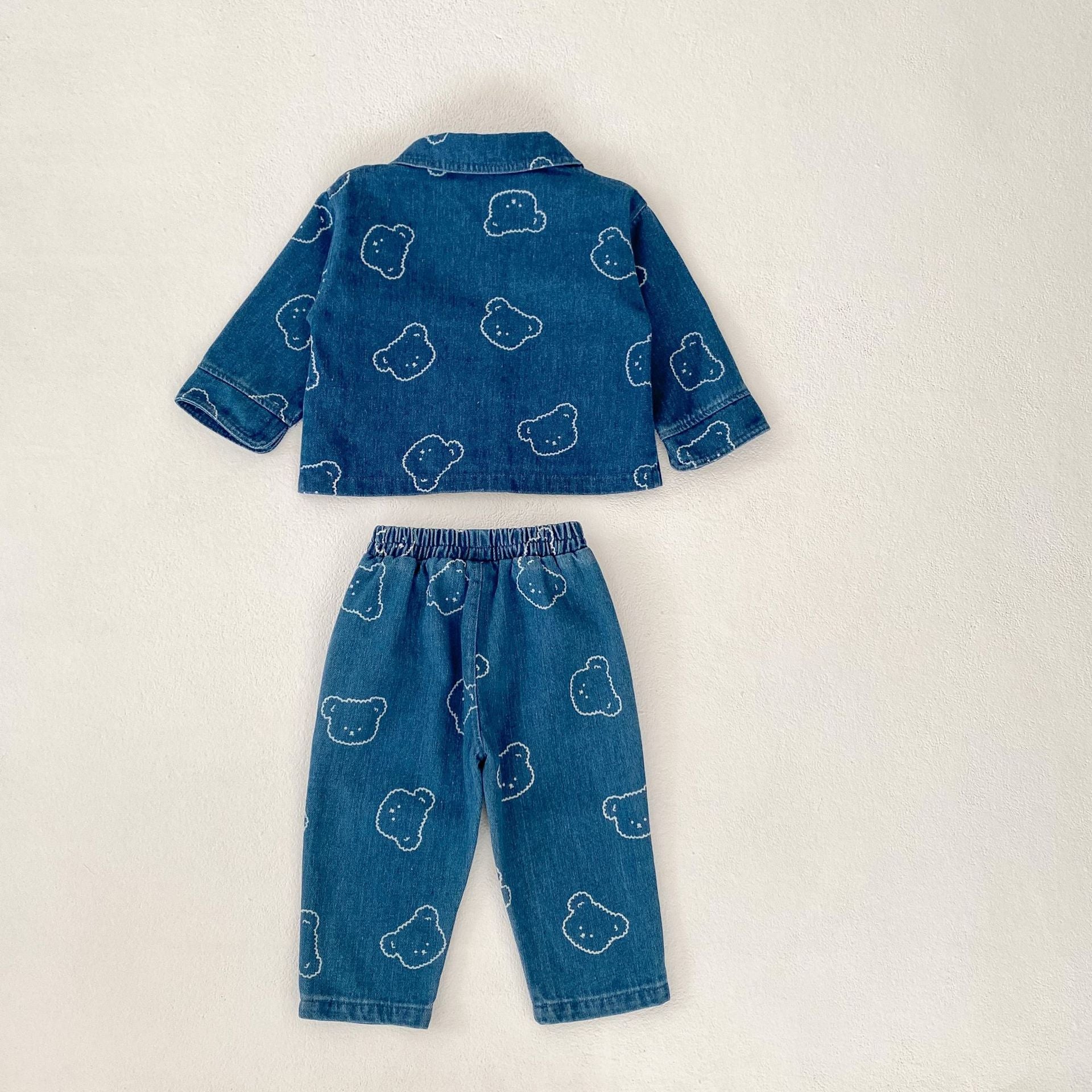 Baby Embroidered Bear Denim Two-Piece Set