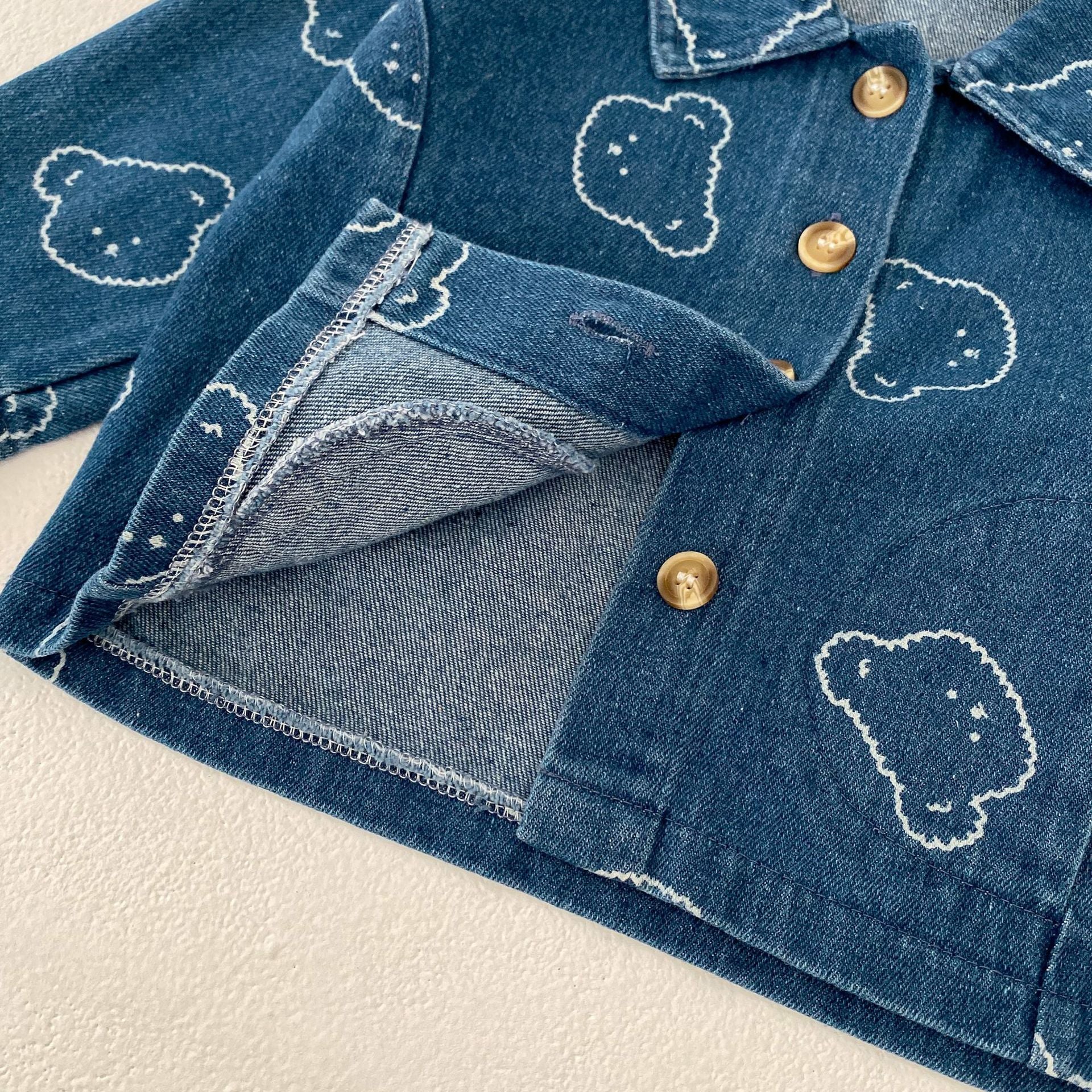 Why settle for ordinary when you can wrap your little one in the unique style and coziness of our Baby Embroidered Bear Denim Two-Piece Set? Whether they're exploring or snuggling, this outfit is an adorable wardrobe essential.