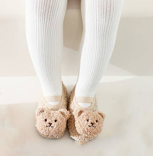 The new Beige Bear Strap Slippers feature a signature bear head and a snug fit with a non-slip bottom, making them a great addition to your little ones bedtime routine.