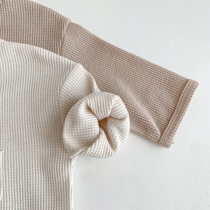 🧸 Cuddly Waffle Knit: Our Waffle Bear Tracksuit is made with 95% cotton & 5% polyester, ensuring a soft and cozy feel against your baby's delicate skin. The waffle knit texture adds an extra layer of warmth, making it perfect for cooler days.