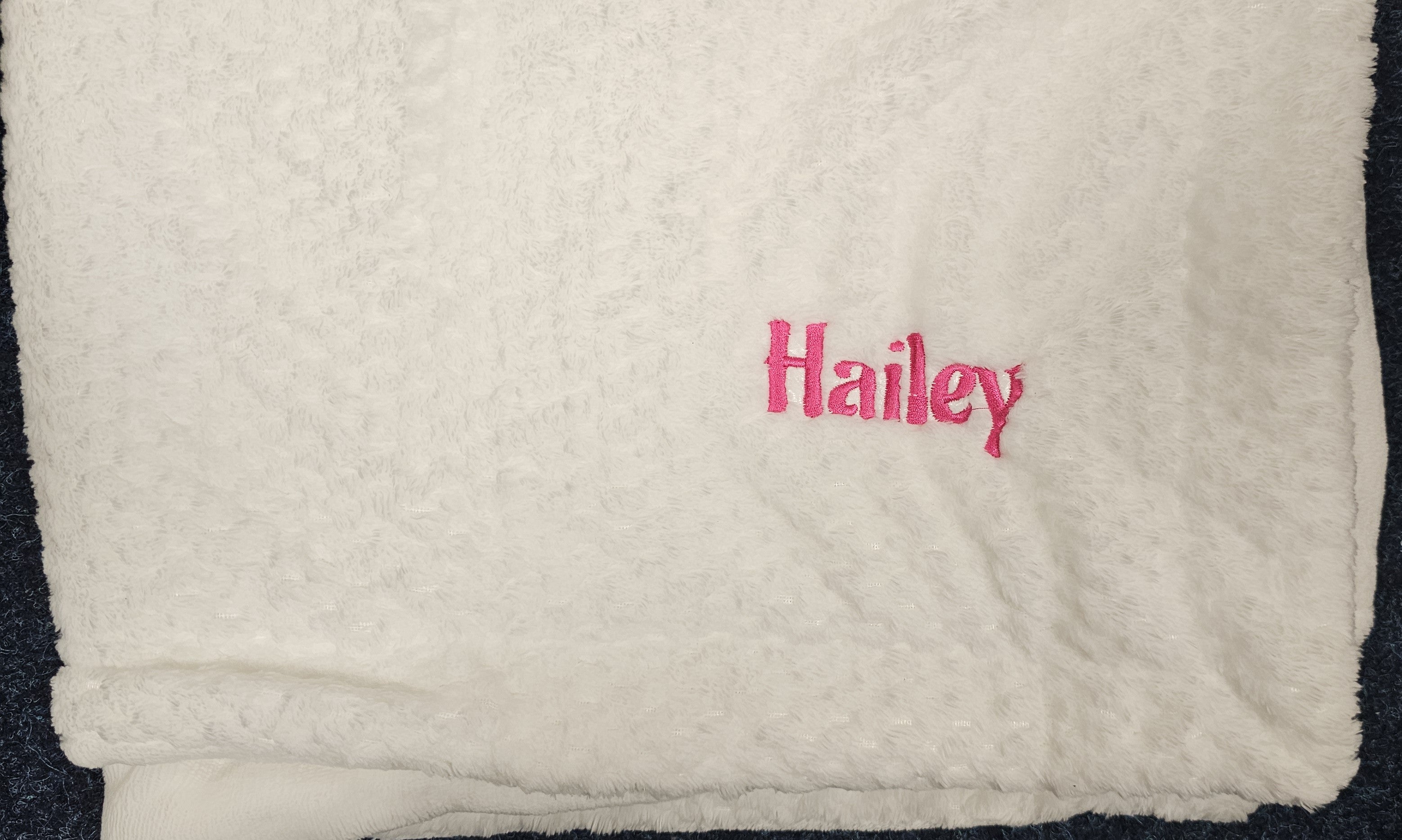 Sample Sale - White cocole blanket - 'Hailey' in Pink thread