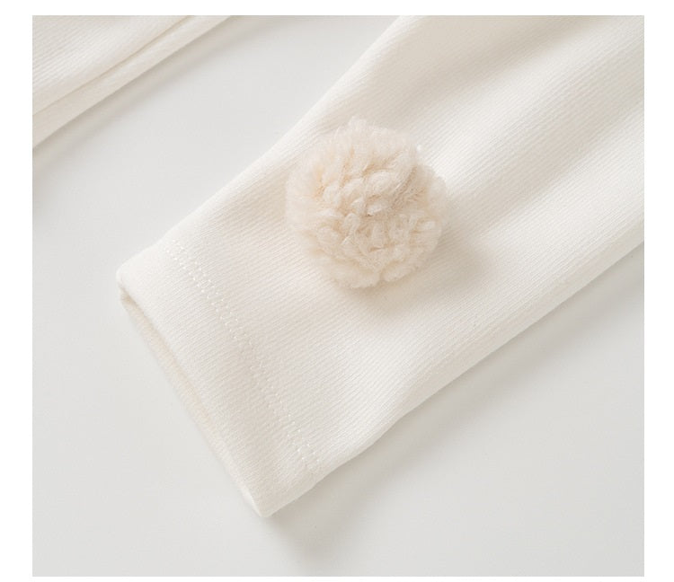 - Complete Ensemble: This adorable set includes a quilted bodysuit featuring a plush bear applique, soft leggings with playful pom-pom details, and a cozy bear-themed hat with 3D ears for added cuteness.