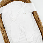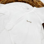 The Angel Boucle Wrap Baby Grow Romper features a timeless design that exudes elegance and simplicity. Its classic silhouette and understated details make it a versatile choice for any occasion, whether it's a special family gathering or a casual day at home.