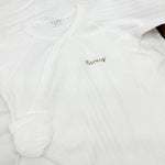 Baby’s name embroidered in the dreamiest thread—such a special keepsake.