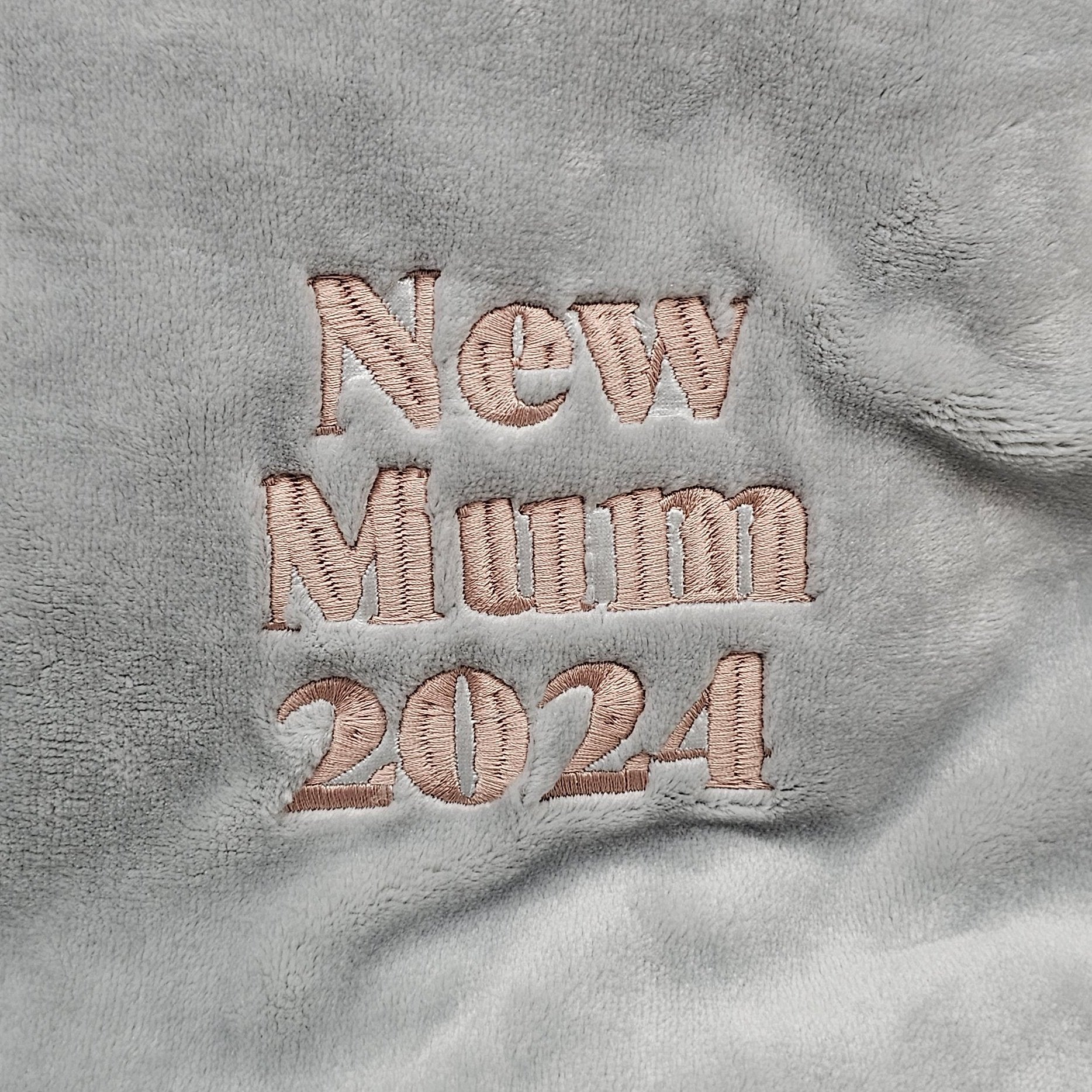 Luxuriously Soft 'New Mum 2024' Personalized Blanket: A lush, incredibly soft blanket that promises comfort and warmth, perfect for repeated use. Select in Grey or Pink colour.