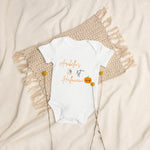 What sets this bodysuit apart is the personal touch you can add. Simply enter the baby's name in the customization box, and our talented team will create a unique keepsake that's as special as your little one. Whether you're celebrating your own bundle of joy or looking for a thoughtful gift for a new parent, this bodysuit is a wonderful way to mark the occasion.