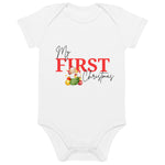 Introducing the Cozy Crew Club's exquisite "My FIRST Christmas Bear" bodysuit, a delightful addition to any baby's wardrobe and an ideal gift for proud parents. Crafted with love and care, this charming white baby grow features a precious Christmas Bear Design, evoking warmth and wonder.