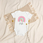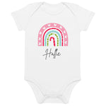 Introducing the Cozy Crew Club's exquisite " Christmas Rainbow" personalized bodysuit, a delightful addition to any baby's wardrobe and an ideal gift for proud parents. Crafted with love and care, this charming white baby grow features a precious Christmas Bear design, evoking warmth and wonder.