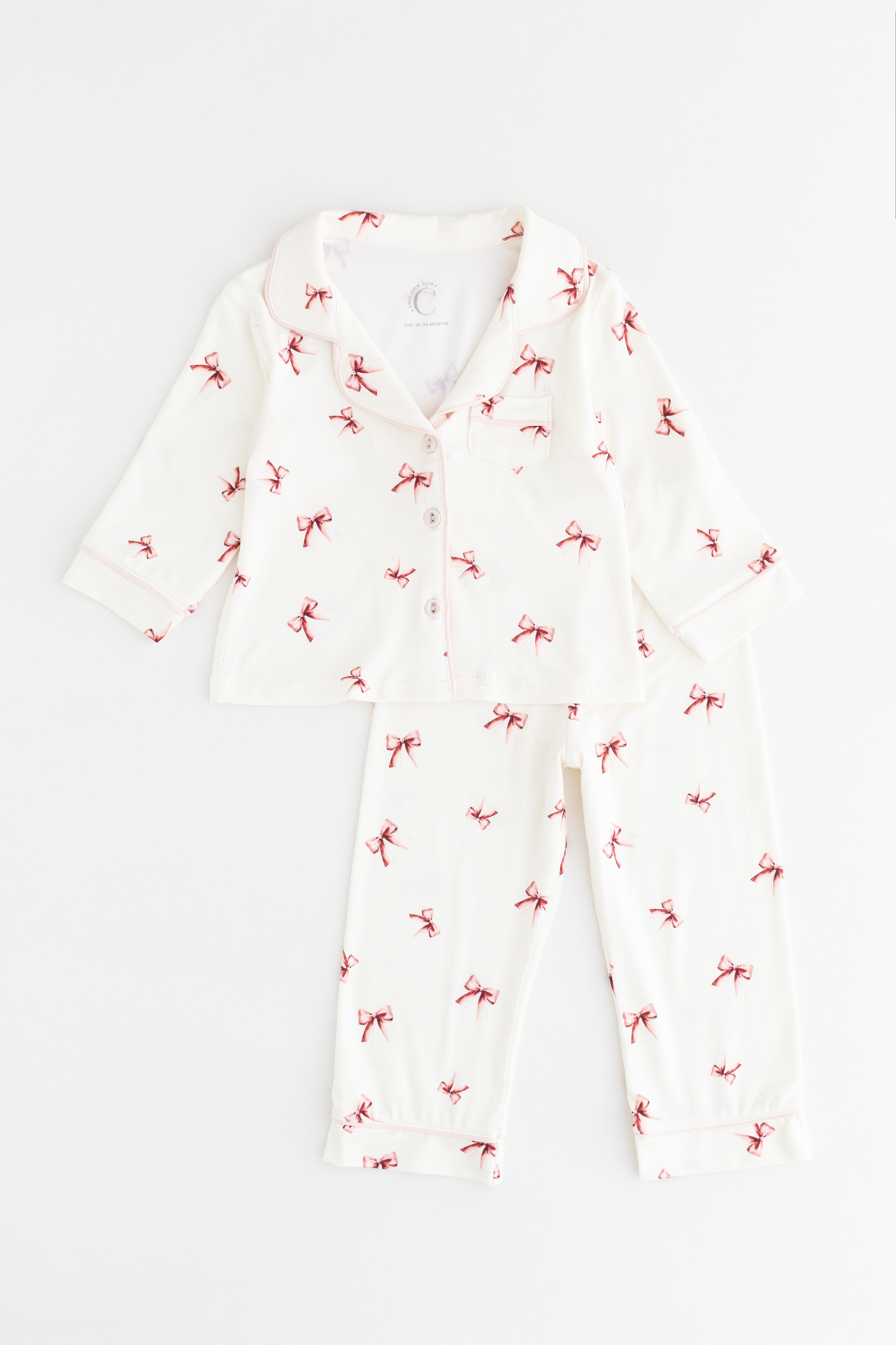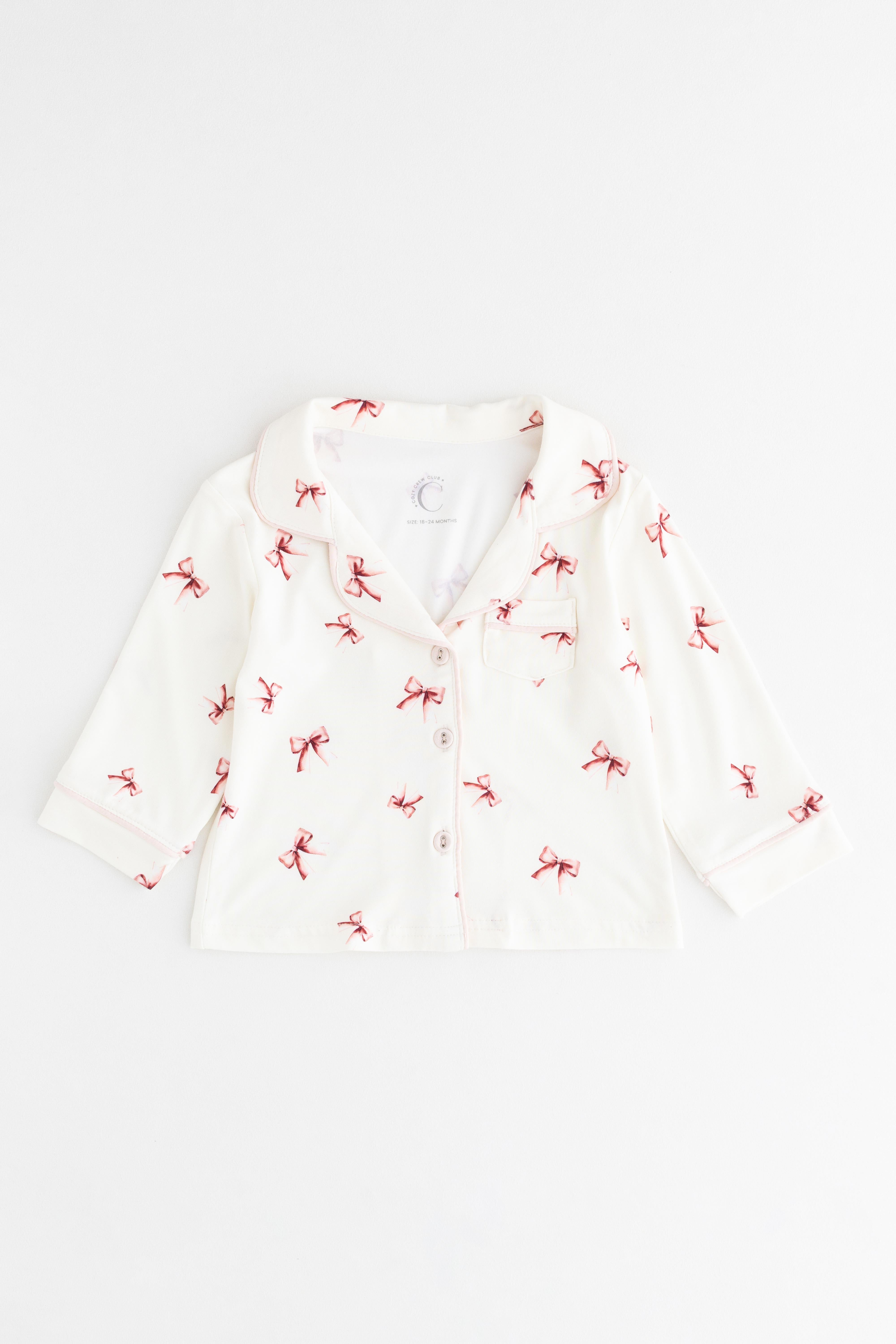 Say hello to our sweetest set yet — the Mini COZY Rosy Ribbon Pyjamas, featuring an all-over print of delicate pink bows on our signature creamy base. Perfect for bedtime cuddles, slow Sunday mornings, and twirling around the lounge, these jammies are made to feel as lovely as they look.