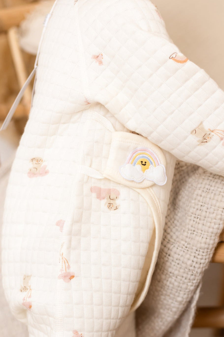 🌈 Rainbow Joy in Every Stitch Adorned with playful little rainbows, sunshine clouds, and charming characters, the print is pure cheerfulness. It’s a unisex favourite with a touch of sweet nostalgia – a little joy for you, and a lot of comfort for them.
