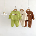 Our Autumn Bear Colour Tracksuit comes in three beautiful shades – 💚 Green, ☁️ Cream, and 🌰 Brown. Each color is thoughtfully chosen to capture the essence of fall. The Green embodies the lushness of autumn leaves, the Cream exudes the warmth of cozy evenings, and the Brown reflects the earthy tones of nature's changing palette. 🍁👶