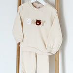 This tracksuit is not only stylish but also crafted with the utmost care and attention to detail. The adorable 🐻 bear motif on the top is a reminder of cuddly warmth, making it perfect for the cooler months. The soft, high-quality fabric ensures that your baby stays comfortable and snug during the season. 🌟