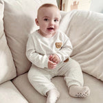 Introducing our Bear Colour Tracksuits, as seen with Molly-Mae, exclusively from Cozy Crew Club. Crafted in our signature soft fabric, these tracksuits are perfect for both playtime and relaxation. Made with plush cotton featuring a brushed interior, they offer unmatched comfort. Plus, ribbed cuffs ensure warmth stays in, keeping your little one cozy all day long.