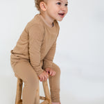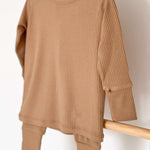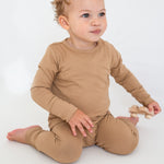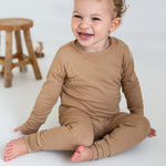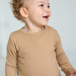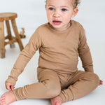 Brown Ribbed Bamboo Two-Piece Set Long Sleeve Pyjamas