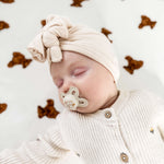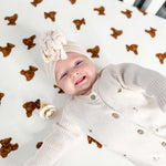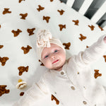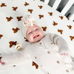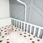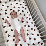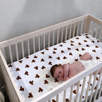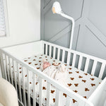Enhance your nursery with the cozy elegance of our hand-painted bear-patterned cot sheets from Cozy Crew Club.