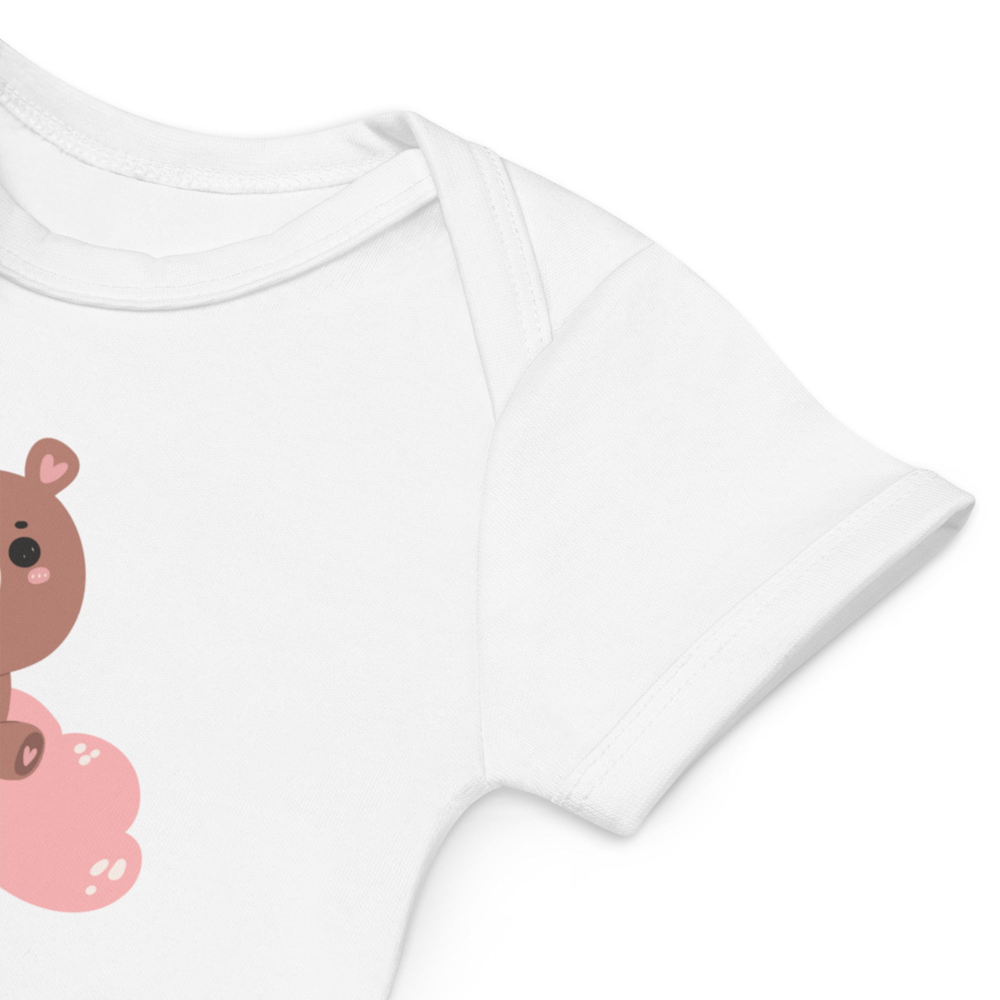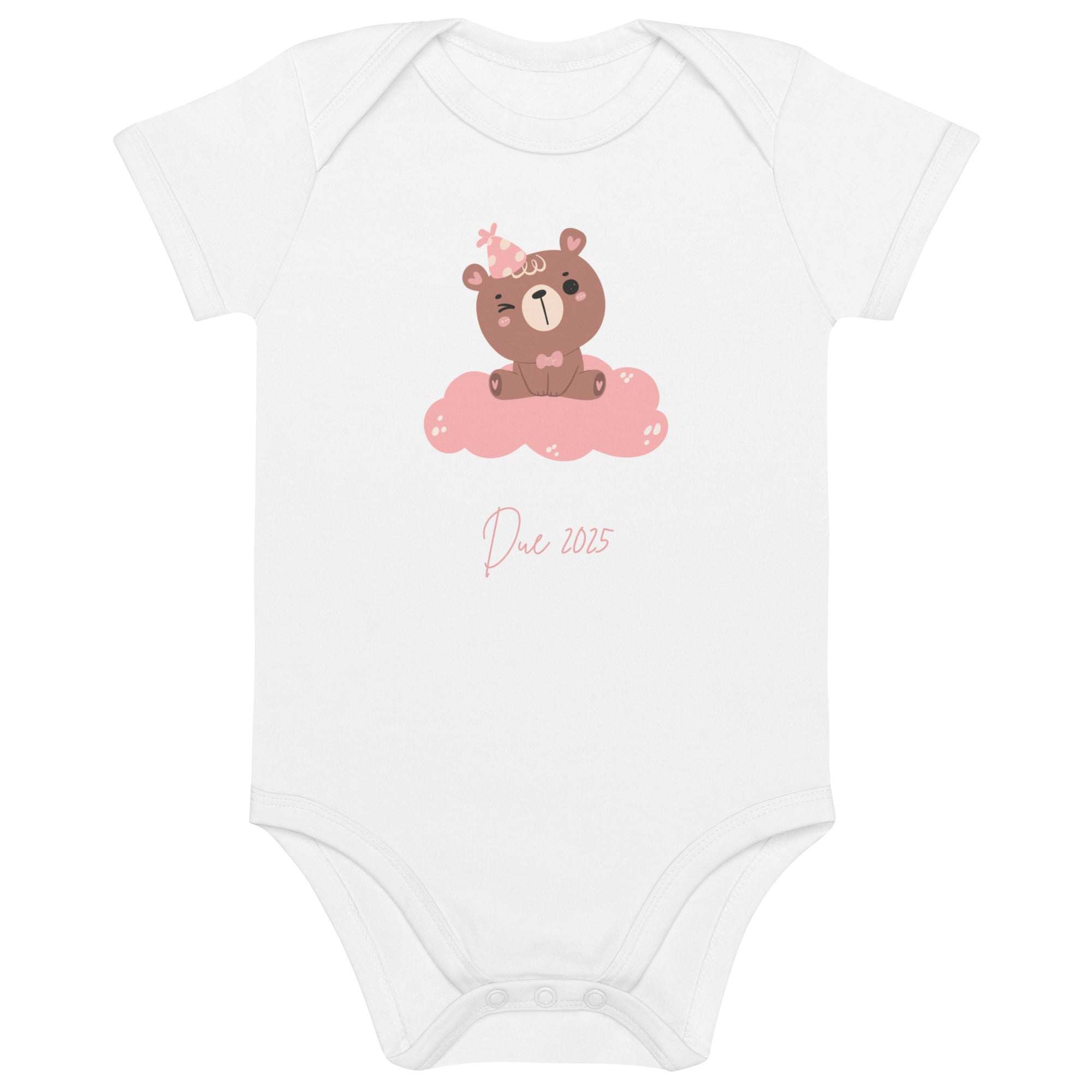Introducing the Cozy Crew Club's exquisite "Bear On A Cloud Baby Girl Due" personalized bodysuit, a delightful addition to any baby's wardrobe and an ideal gift for proud parents. Crafted with love and care, this charming white baby grow features a precious Bear Cloud design, evoking warmth and wonder.