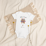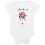 Introducing the Cozy Crew Club's exquisite "Baby Due" personalized bodysuit, a delightful addition to any baby's wardrobe and an ideal gift for proud parents. Crafted with love and care, this charming white baby grow features a precious Hot Air Balloon design, evoking warmth and wonder.