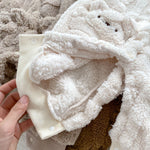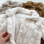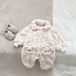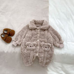 Rendez l'hiver encore plus douillet pour votre bébé avec la barboteuse duveteuse avec doublure en fourrure d'ours , conçue pour faire fondre les cœurs tout en gardant le froid à distance.