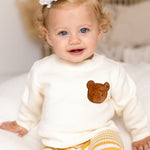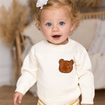 Our Cozy Cub Knit Sweater is made for those chilly mornings, lazy afternoons, and every magical moment in between. Featuring a sweet embroidered bear face on a creamy soft knit, this sweater is the perfect balance of adorable and practical.