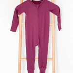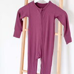 Grenouillère zippée en bambou côtelé Berry - Une pièce