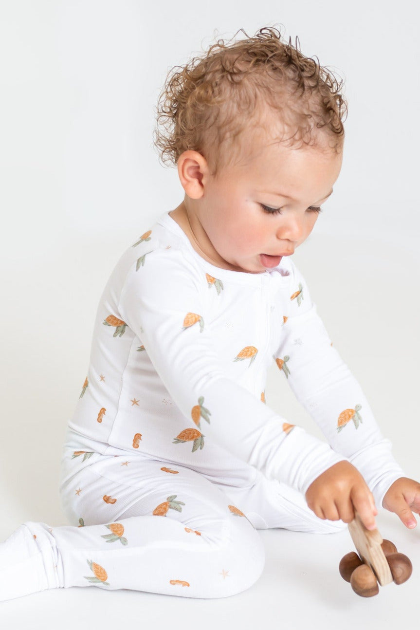 The two way zip makes nappy changes so quick without fully undressing baby. Love the fold-over hands and non-slip feet. It’s insanely soft and cosy, and still looks brand new after washing.