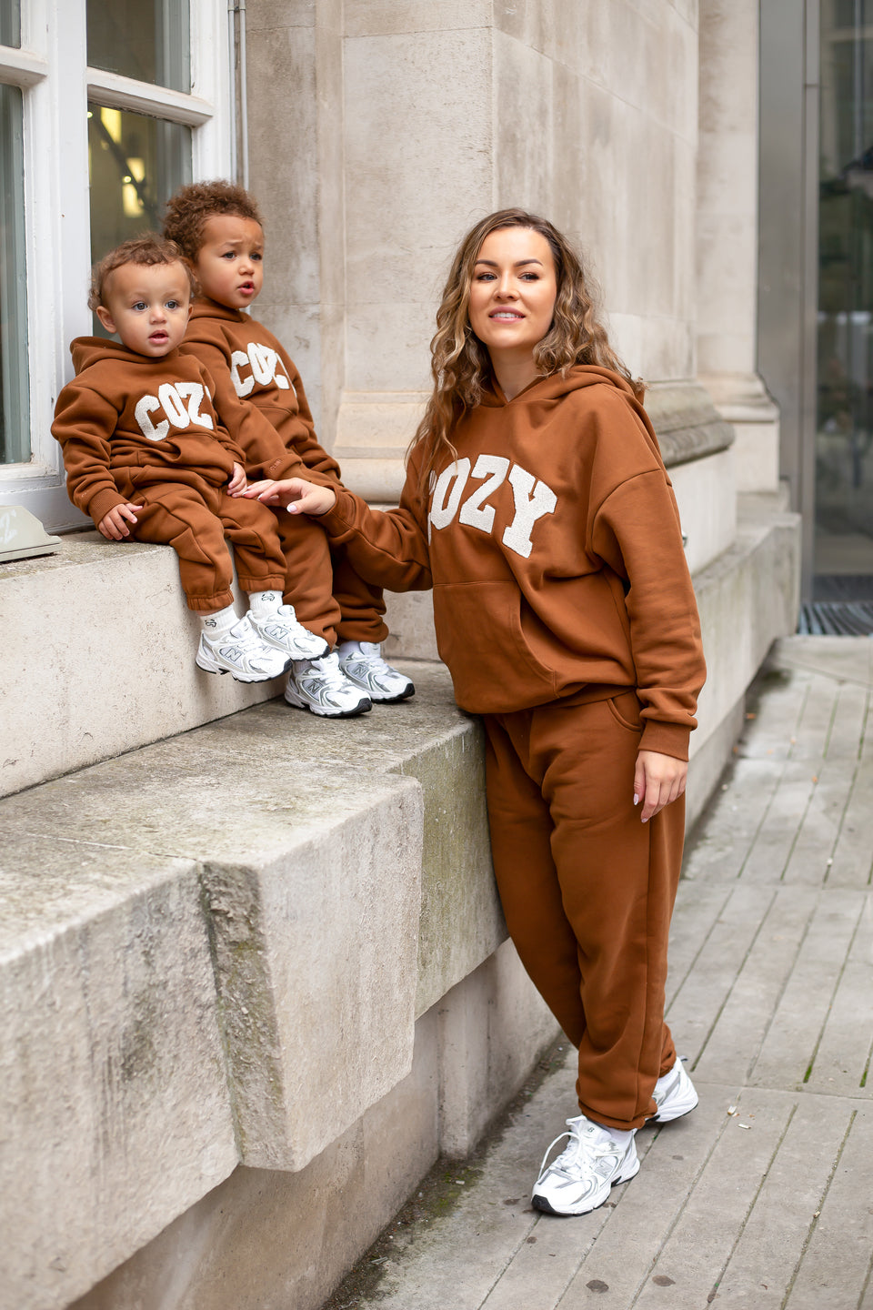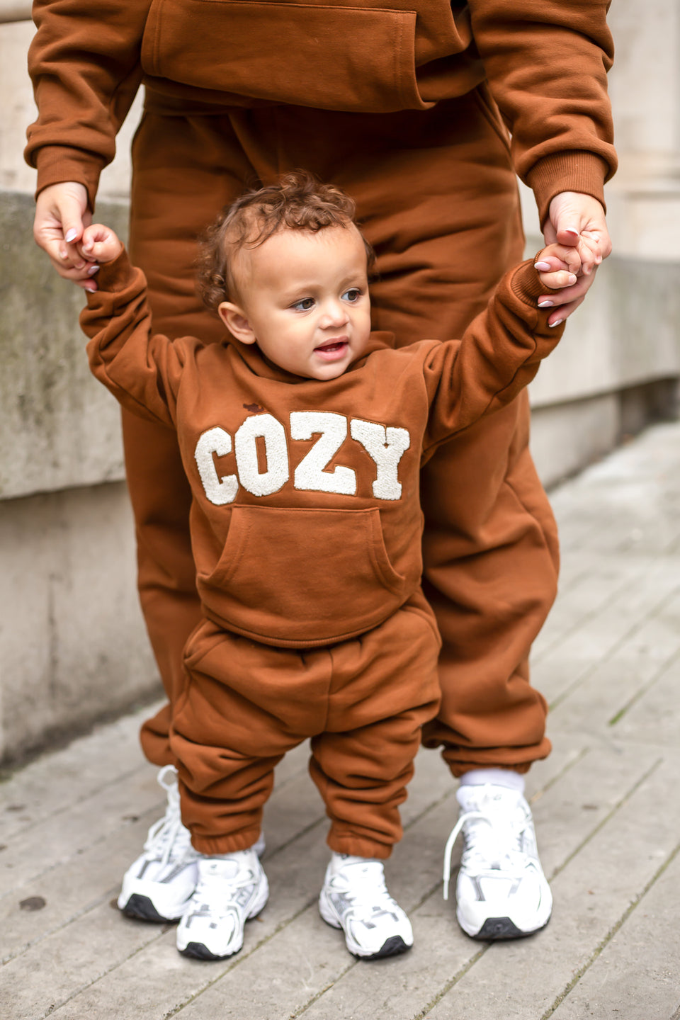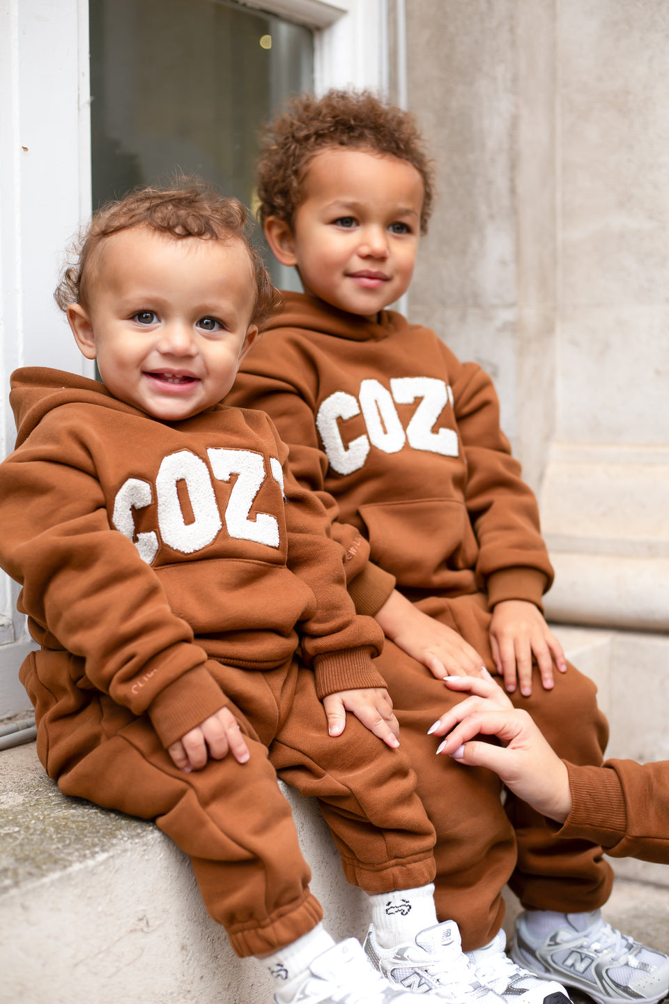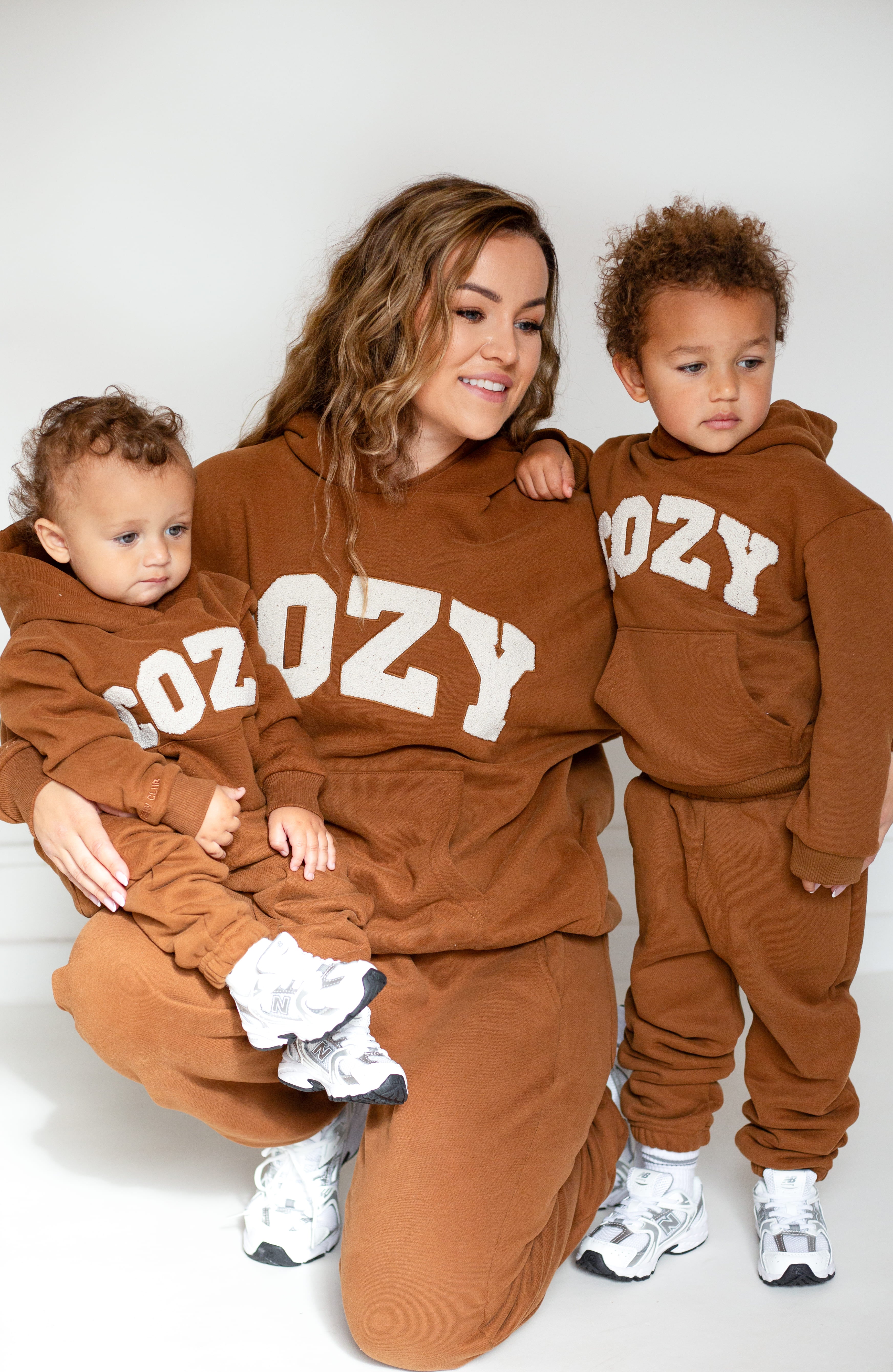 Gardez votre tout-petit bien au chaud et élégant avec notre survêtement COZY, disponible en marron, pierre et blanc cassé. Cet adorable ensemble comprend un sweat à capuche surdimensionné avec le mot « COZY » sur le devant en lettres appliquées en tissu éponge doux, ajoutant une touche amusante et tactile à sa tenue. Associé à un pantalon de survêtement assorti, ce survêtement est parfait pour jouer, se détendre ou partir à l'aventure en famille.