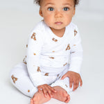 Présentation de l'ensemble pyjama deux pièces à manches longues Bear Bamboo imprimé garantissant que votre tout-petit a toujours ses meilleurs amis à ses côtés.