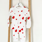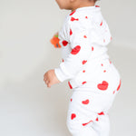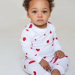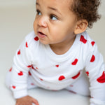 Nous vous présentons notre adorable pyjama à manches longues en deux pièces en bambou et coton biologique avec un charmant imprimé cœur d'amour de la Saint-Valentin, garantissant que votre tout-petit a toujours ses adorables copains à ses côtés.