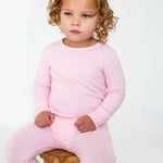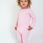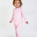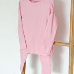 Pyjama à manches longues en bambou côtelé rose deux pièces
