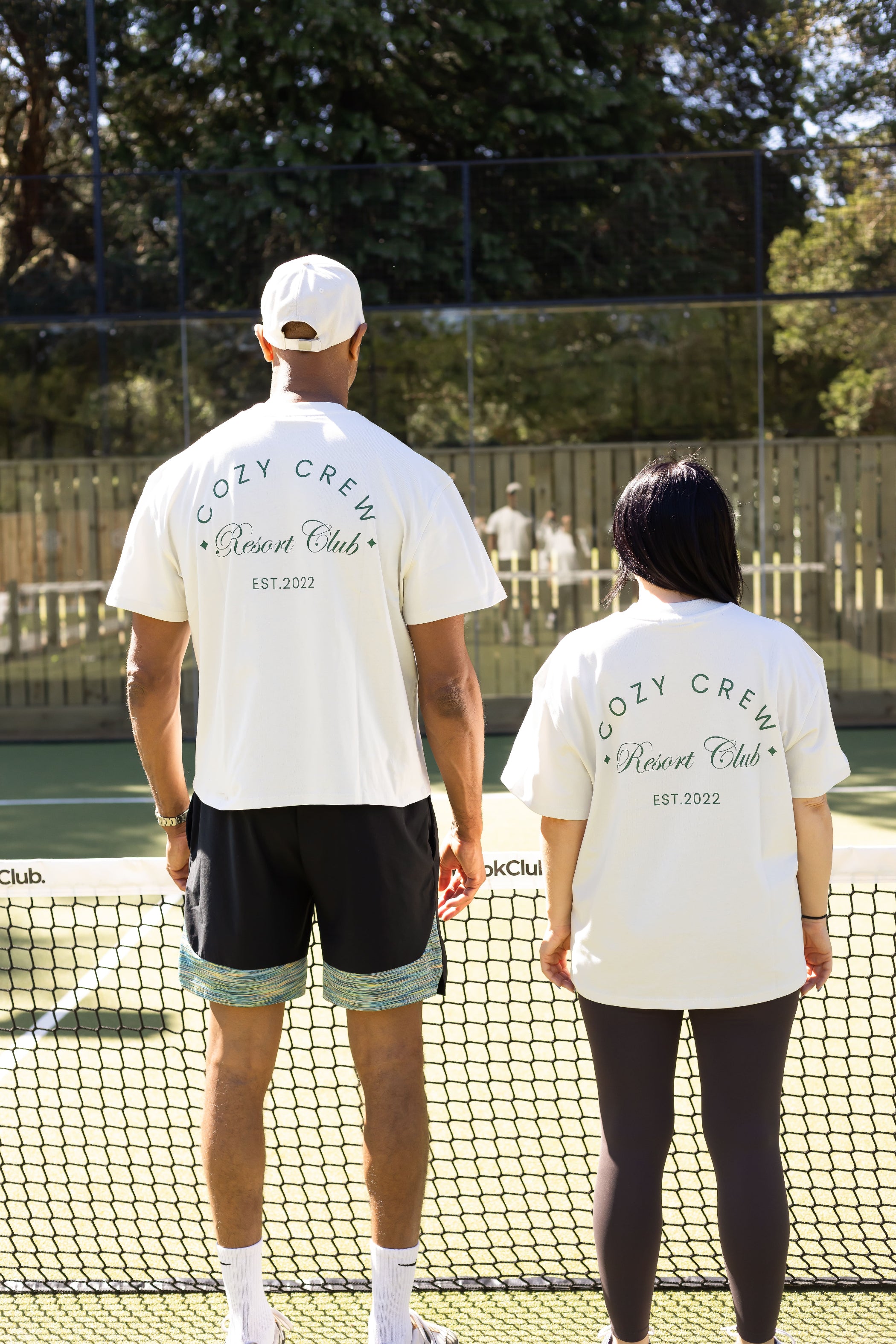 Meet your new off-duty uniform: the Cozy Crew Resort Club Tee in Ash Grey. With its oversized boxy silhouette and luxe feel, this tee is designed for lounging, lunching, and everything in between. It’s the kind of effortlessly cool piece that works just as well poolside as it does on the school run.