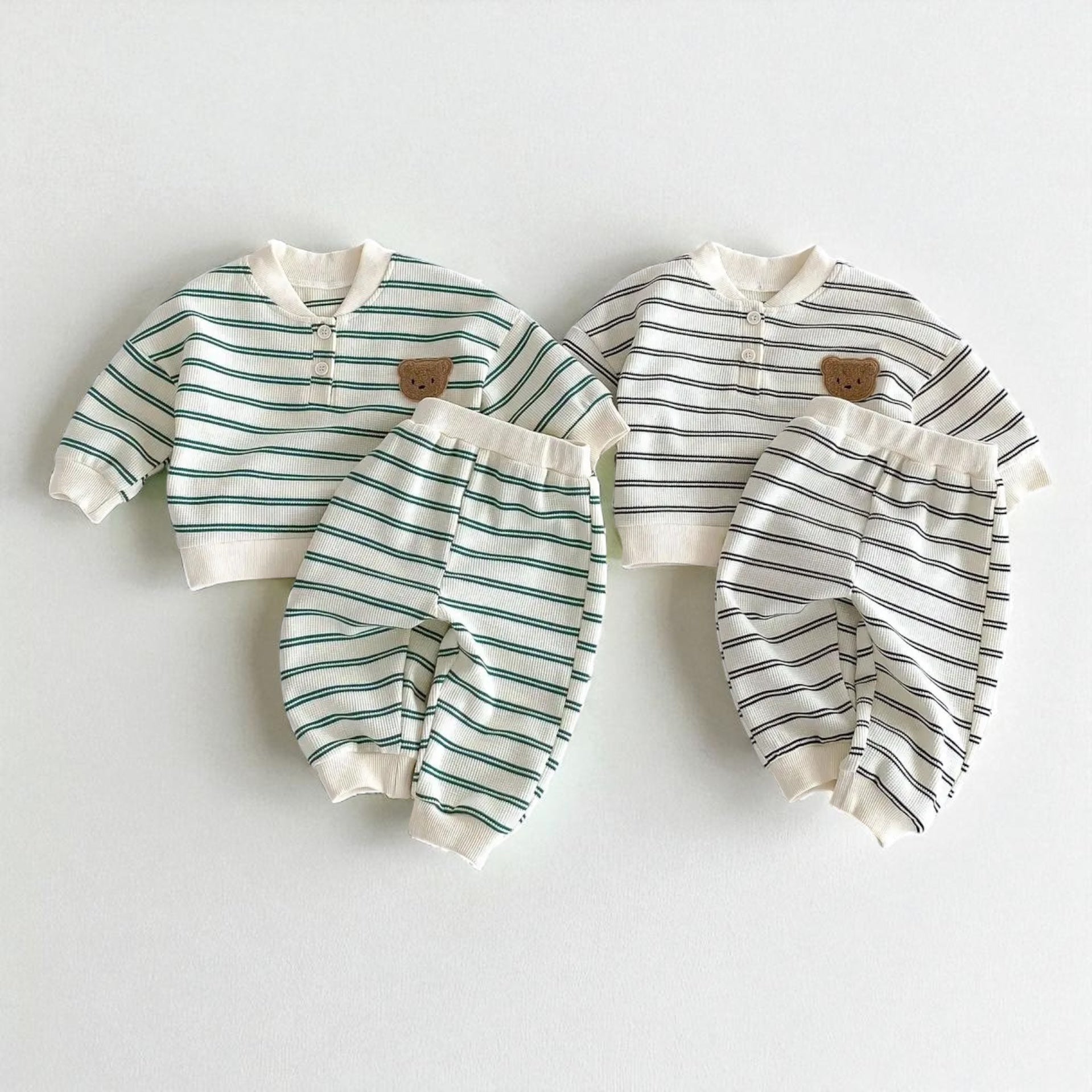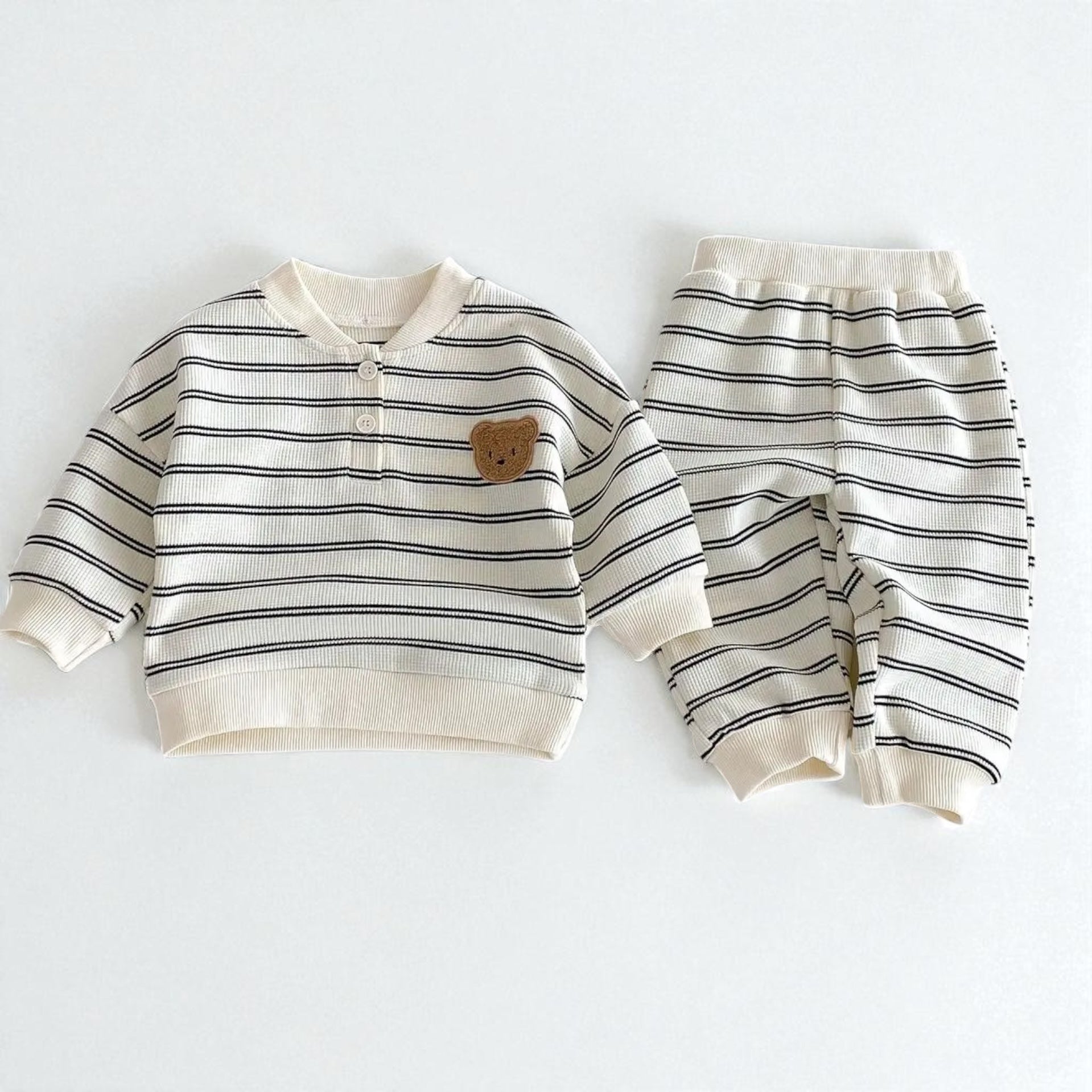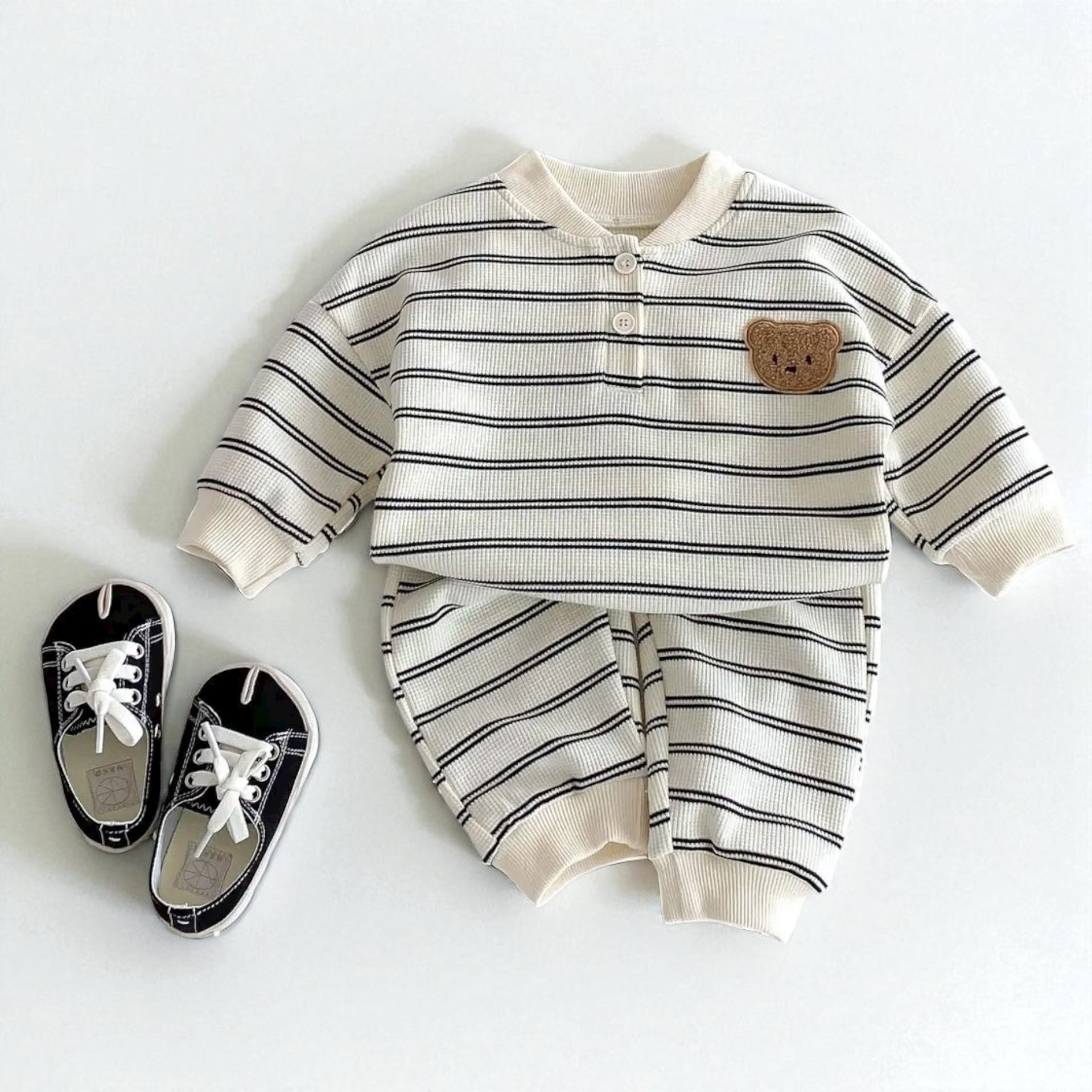 Say hello to your baby’s new go-to outfit: the Striped Polo Bear Tracksuit – a two-piece set that blends effortless style with all-day coziness. Featuring a textured stripe knit and a sweet teddy bear patch, it’s the perfect combo of classic polo vibes and playful Cozy Crew personality.