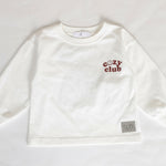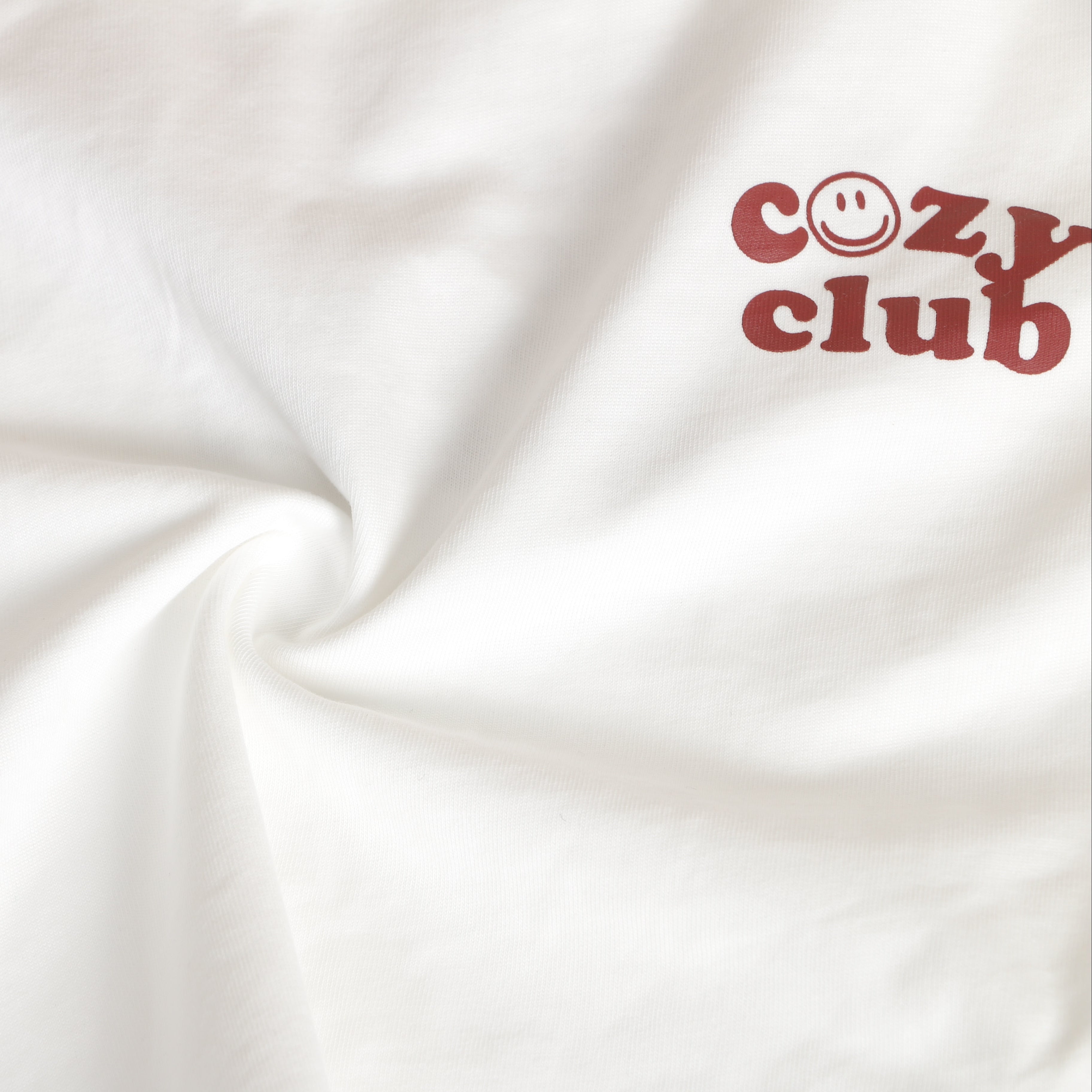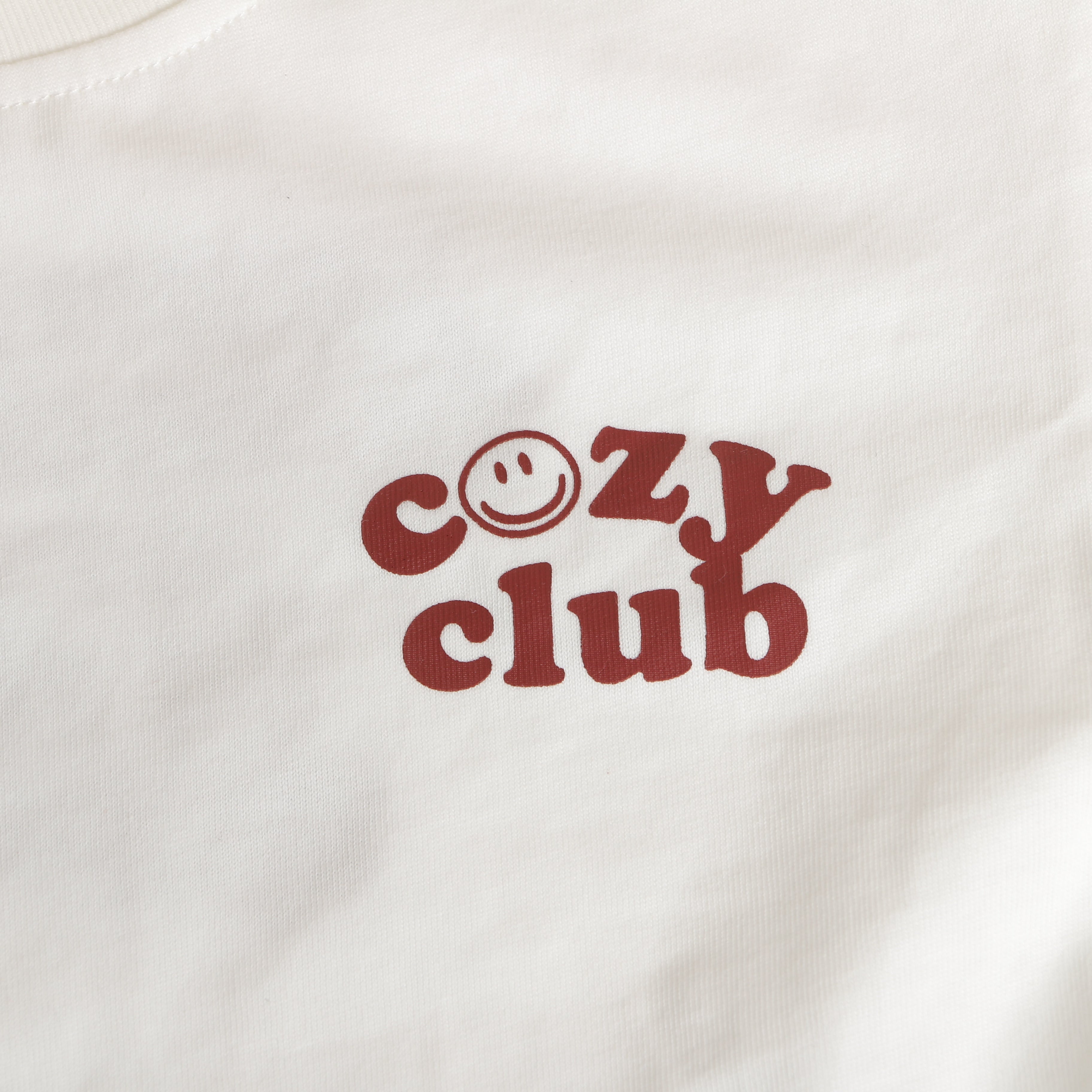 The front keeps things classic with a subtle “cozy club” logo, while the back steals hearts with a bold, feel-good message that says it all: mummy and daddy are my favourite people. (Cue the proud parent pics.)
