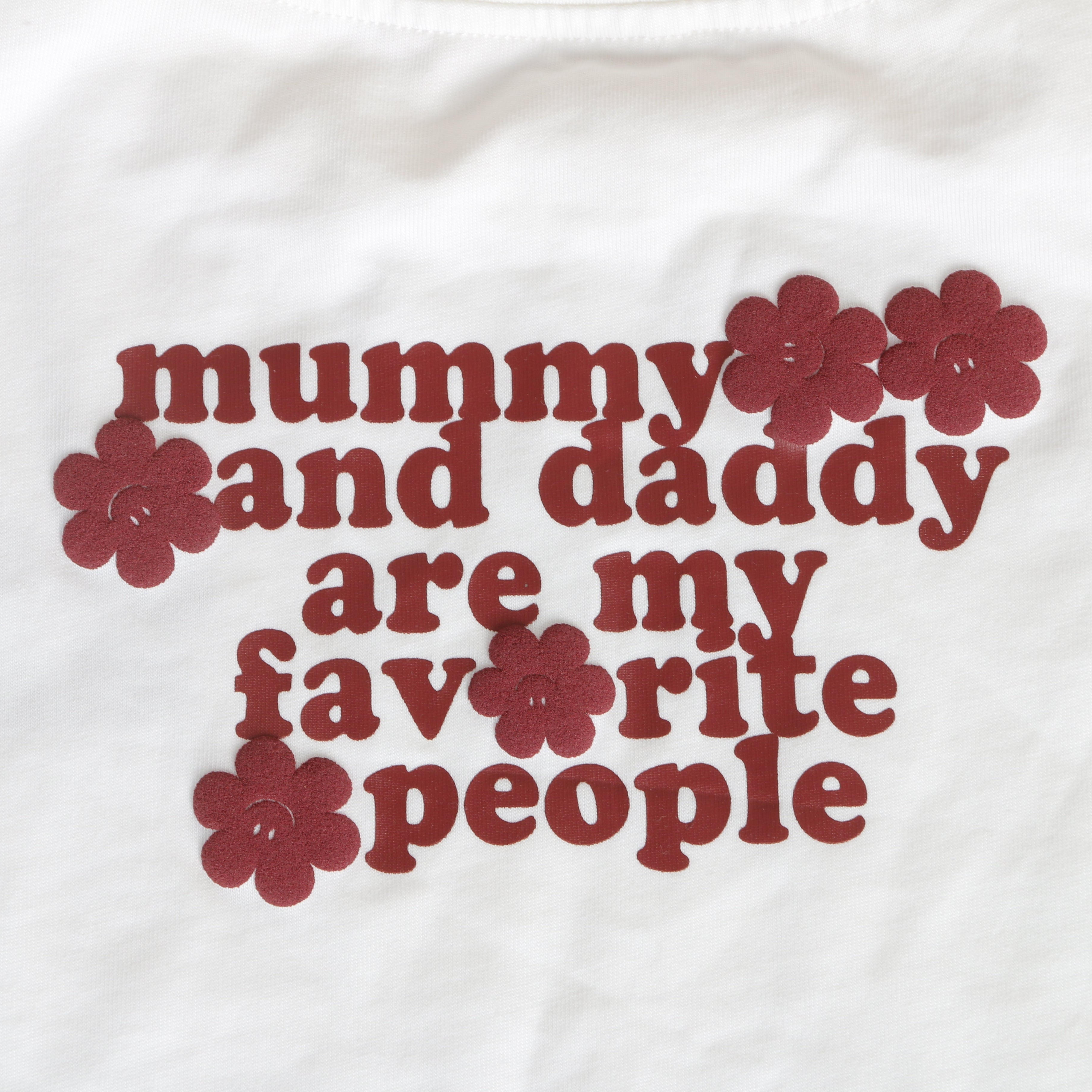 Because when you're this cute, there's no hiding your favourites — our Mummy & Daddy Are My Fav Cozy Long Sleeve Tee is the ultimate love note in outfit form. With its soft cream hue, retro red lettering, and flower-power vibes, it’s sweet, sentimental, and seriously stylish made from 100% cotton.