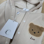 Sample Sale - 0-6m - Creme playsuit - top popper missing and 'Leo' in brown thread