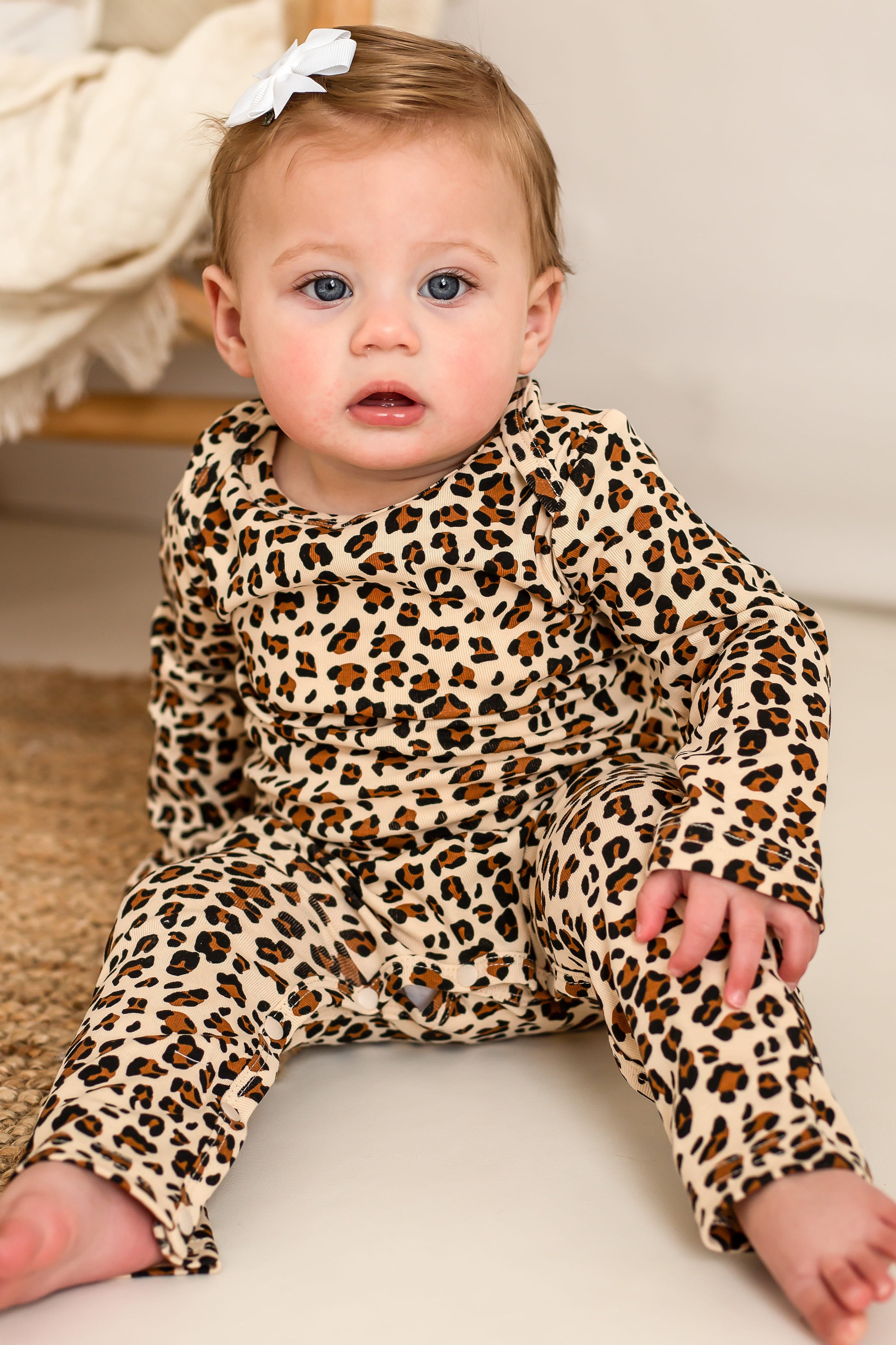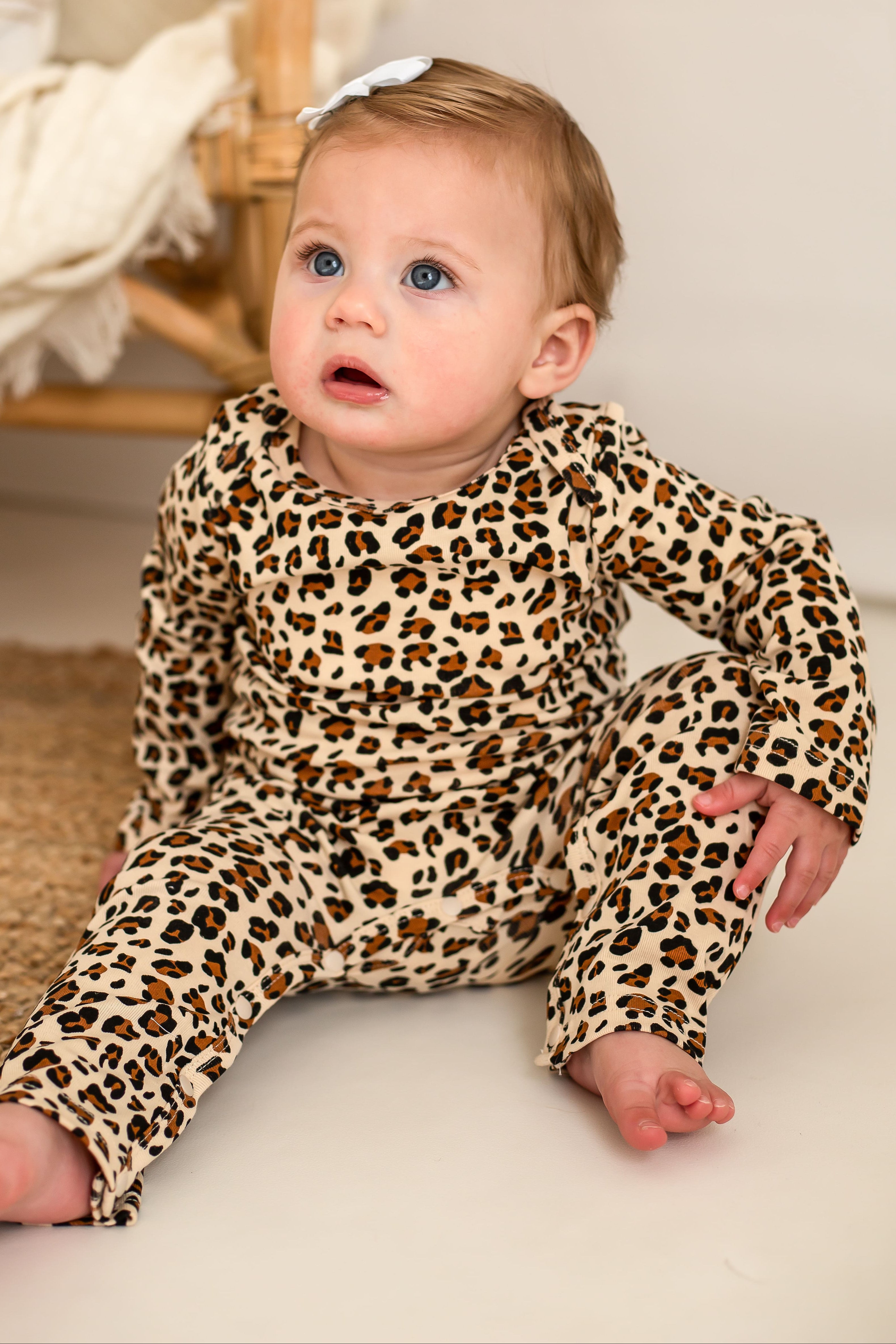 Featuring an all-over leopard print in earthy, gender-neutral tones, it’s a playful nod to nature with a Cozy Crew twist. Whether it’s nap time, tummy time, or wild adventure time, this romper is the perfect one-piece wonder for everyday wear.