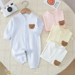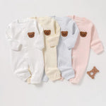 Enveloppez votre tout-petit dans un confort ultime avec notre barboteuse côtelée en forme d'ours, disponible en quatre ravissantes teintes pastel : blanc, bleu, rose et jaune. Fabriquée en coton doux et côtelé, cette adorable barboteuse est parfaite pour les jeux et la sieste, offrant un confort doux et une liberté de mouvement. Dotée d'un charmant patch en forme d'ours en peluche sur la poitrine, elle ajoute une touche ludique qui ne manquera pas de vous faire sourire.