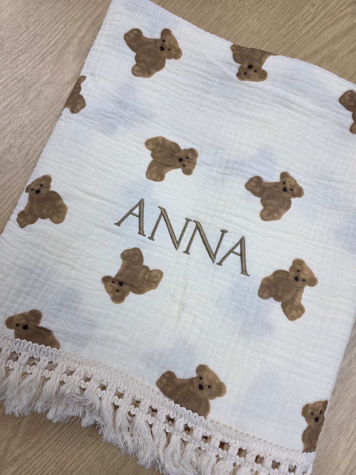 Sample Sale - Bear frill swaddle - 'Anna' in gold thread